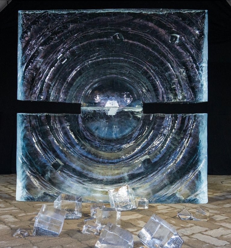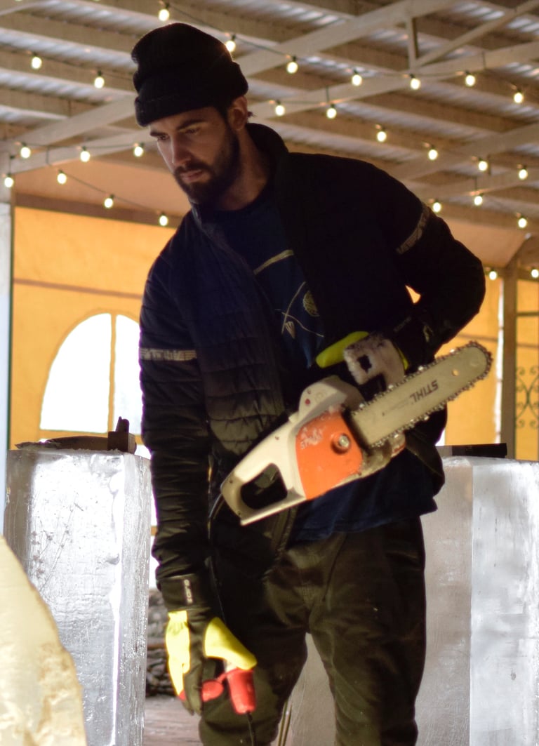 Sancho´s recent introduction to work in ice . It´s been a huge step in his carreer. With a playfull attitude finds sculpting ice is one of the most ephemeral ways of creating a tridimensional piece.